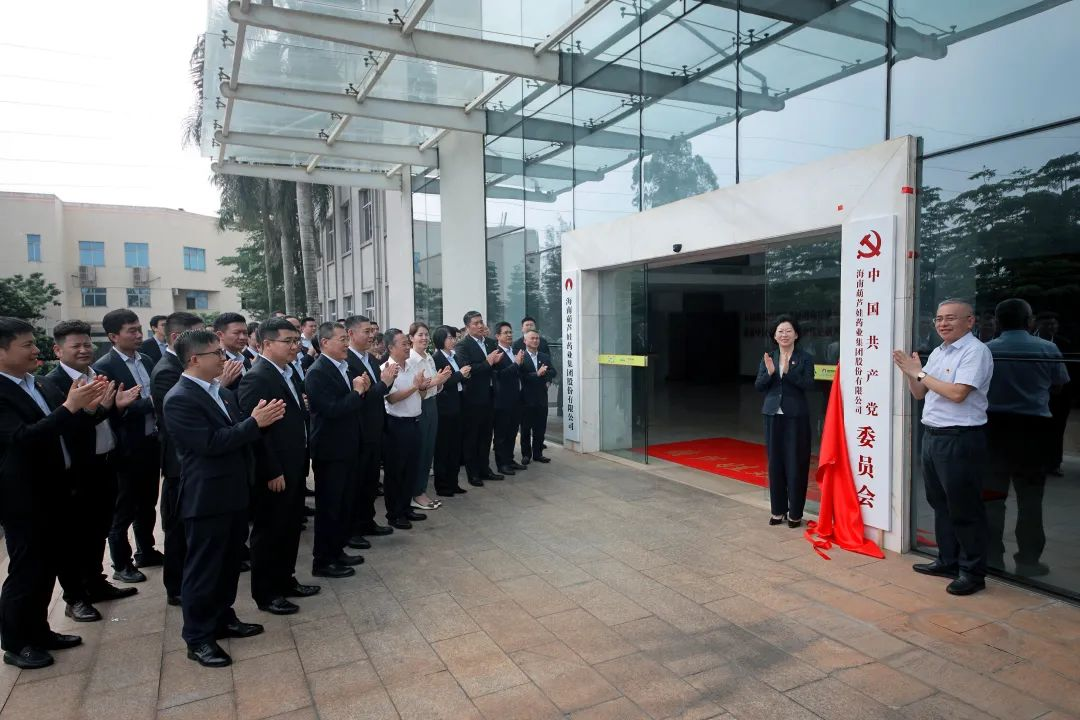 海口市高新区两新组织党委副书记傅爱萍宣读了《中共海口国家高新区非公有制经济组织和社会组织委员会关于同意成立中国共产党海南918搏天堂药业集团股份有限公司委员会的批复》。